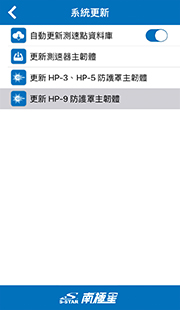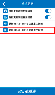 點選『系統設定』→ 更新HP-9防護罩韌體防護罩主韌體需手動自行更新,更新資料約需1至3分鐘,更新中APP暫時無法進行操作。 |
