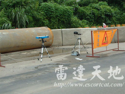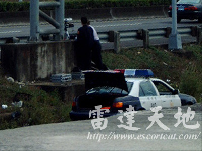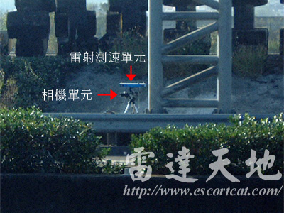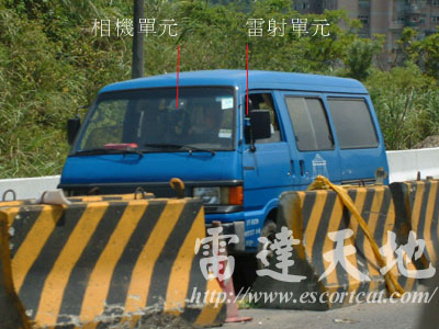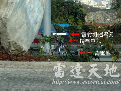 地點:台68線新竹東西向快速道路 14K 系統:義製 Autovelox 104/c2 雷射測速照相系統 台68線新竹東西向快速道路 14K,義製 Autovelox 104/c2 雷射測速照相系統,雷射單元直接架設在路肩護欄上,相機利用三腳架架設於護欄後。測速雖無任何偽裝,但於高速行車狀況下,一般駕駛人不會注意路肩狀況。