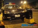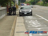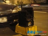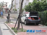 板橋環河路光復橋與華翠橋間 ,Gstao 新型數位K頻三腳架,警車直接停在人行道上 ,標準三角架方式架設, 照車尾 |