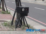 系統配置 150mm 望遠鏡頭與 800 張底片匣標準三角架方式, 可拍攝雙向違規超速車輛 |