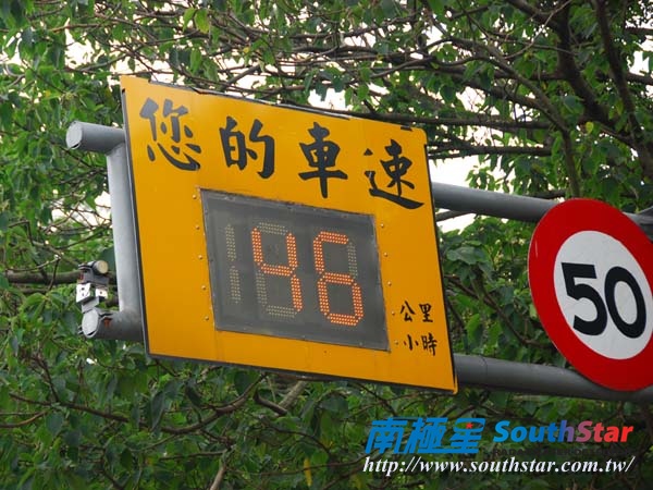 地點:台一甲線龜山萬壽路 系統:K 頻車速偵測顯示告知牌 台一甲線龜山萬壽路--K 頻車速偵測顯示告知牌本系統目前採用 K 頻雷達偵測車速, 利用數位警告牌顯示車輛車速目前不具備照相或攝影功能, 目前全台許多路段都有類似設備