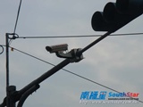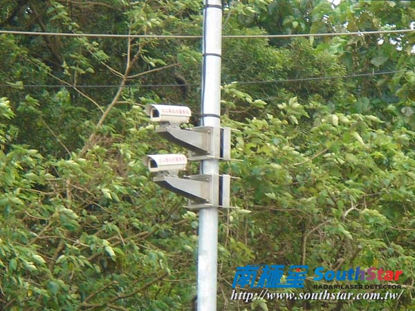 地點:台北縣境內 系統:動態攝影全時錄影系統 台北縣於2007年底於境內 23 處易肇事違規路段架設全時違規攝影系統【無閃光燈】, 此系統通常由三台高解析度攝影機所組成,一台架設於路口紅綠燈上方, 照車頭兩台架設於後方電燈桿上, 照車尾
