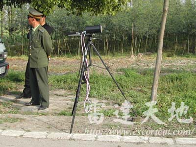 地點:中國大陸 系統:X/K band 測速攔截系統 本照片拍攝於中國大陸, 為目前公安使用之 X/K band 測速攔截系統 外型與台灣警車外掛測速攔停雷達雷同