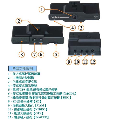 請注意 : 當 G-sensor 感應到重力變化強度超過設定值, 會強制鎖定檔案避免被後續影片所覆蓋, 但同時也會佔據 SD卡空間, 建議使用者定期格式化清空 SD 卡空間(約1-2星期), 避免強制鎖定檔案佔用記憶卡空間造成無法錄影之虞.